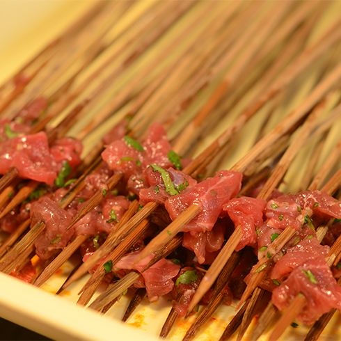 再來到菜品區(qū)選菜,選菜的人也比較多,不過幸好菜品多,種類全,沒有菜了,店里服務(wù)生馬上把洗好的串好的菜補上來,十分新鮮。