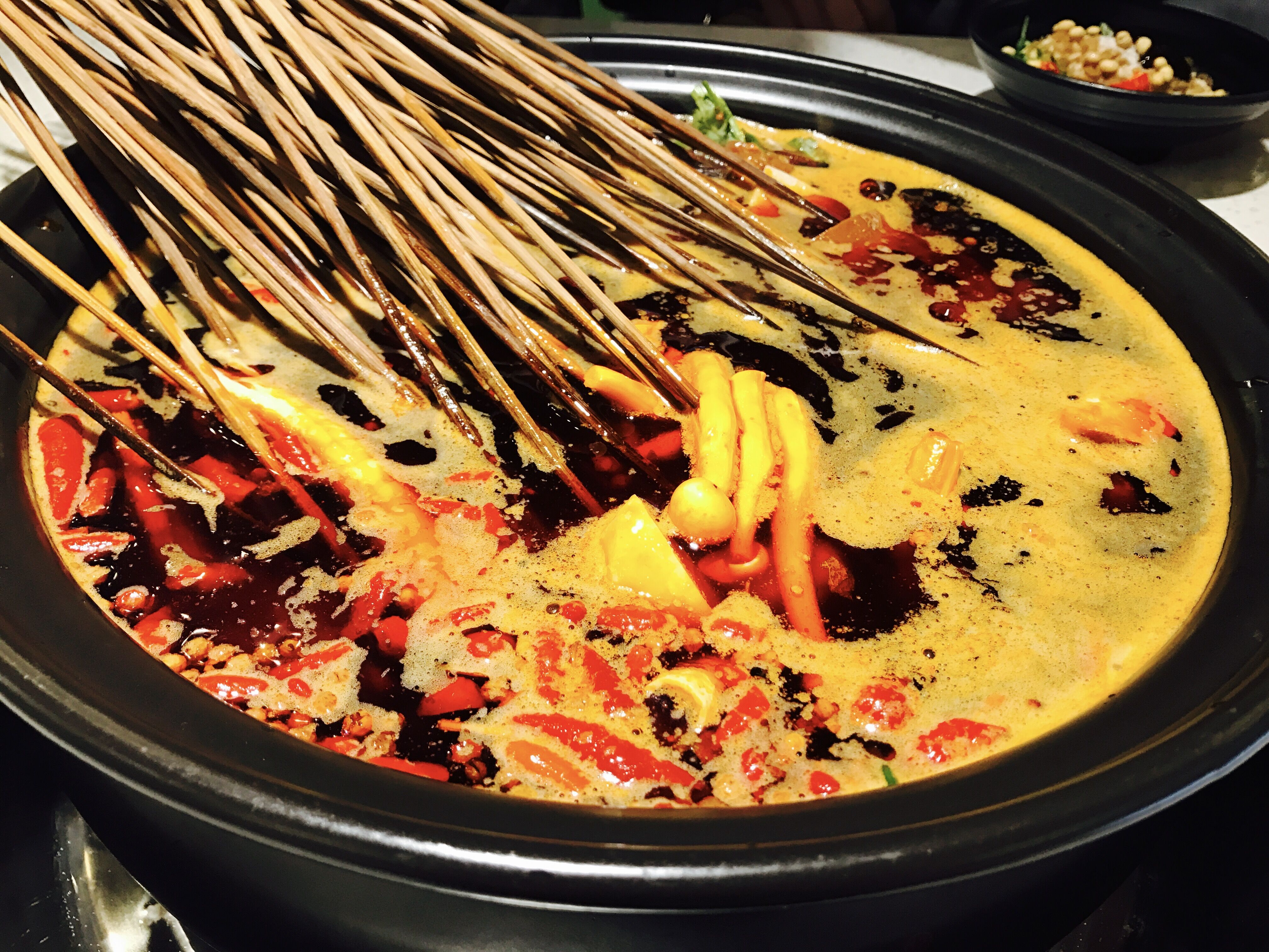 火紅的紅鍋味道十足麻中帶辣辣中帶鮮,真是麻得心醉辣得火熱,清談的清湯鍋更是美味,雖然看上去沒有紅鍋有食欲但是清湯更是鮮美。隨意挑一串自己喜歡的香串串,也體驗一把這燙出的麻辣吧!無論被辣成什么樣,人們的毅力還是如此堅定,面對如此“感人”場面,就算吃得滿嘴紅油、被辣得一塌糊涂又有何懼哉!