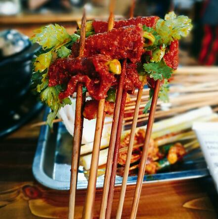 接下來就是對串串香做詳細的理解,并且發現與一般的鐵串串不同的是它采用的是砂鍋,在食物的烹煮過程中能更好的保留食物的味道,加之鍋底采用中草藥熬制而成,夾雜著清淡清新的草藥味。上百種的新鮮菜品,擺滿明亮的冰柜,顧客自取食用,很大程度上避免了食物的浪費,特制的香菜牛肉、泡椒牛肉、折耳根牛肉很是受歡迎。